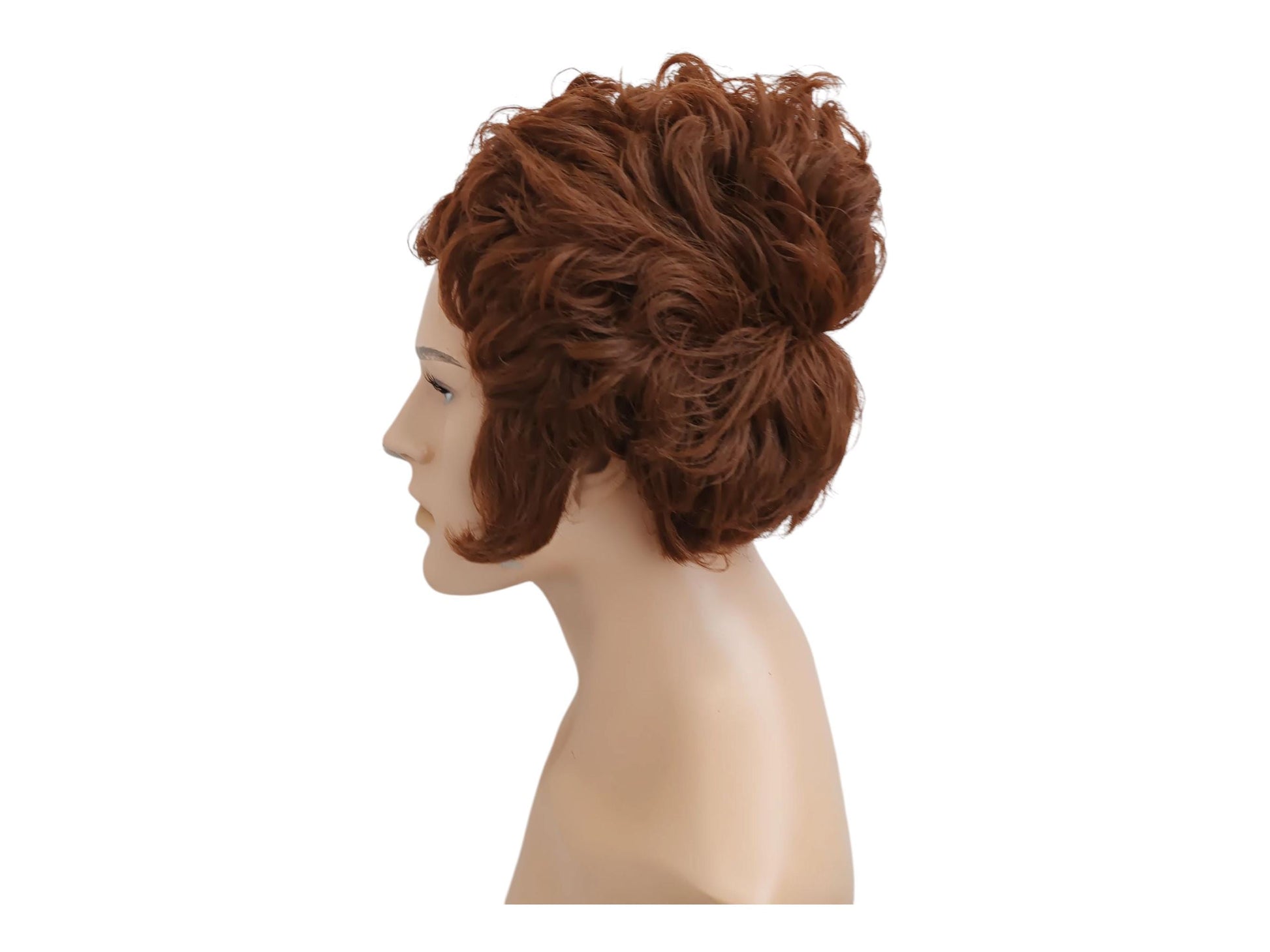 The wig features a voluminous crown with softly defined curls and cropped sides, capturing the neoclassical influence of the period. Made to resemble natural hair, without powder or tight queue styles, this wig suits theatrical performances, period reenactments, or museum-quality costuming.