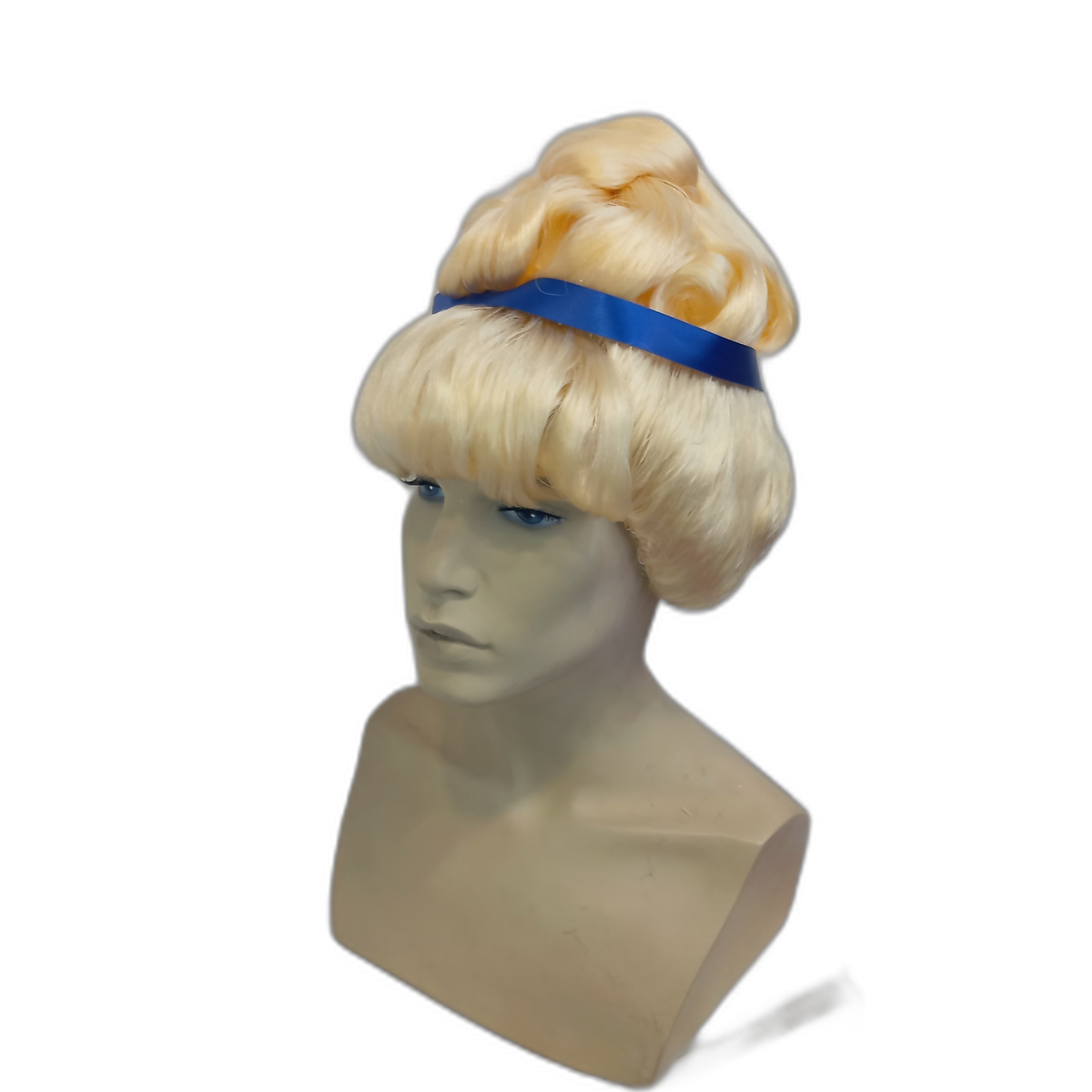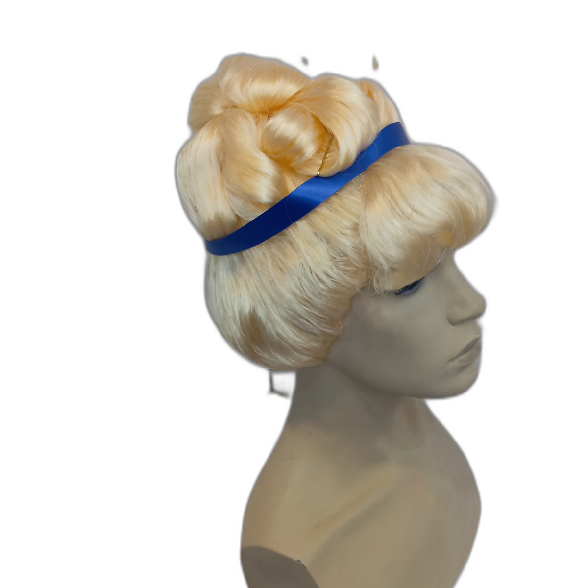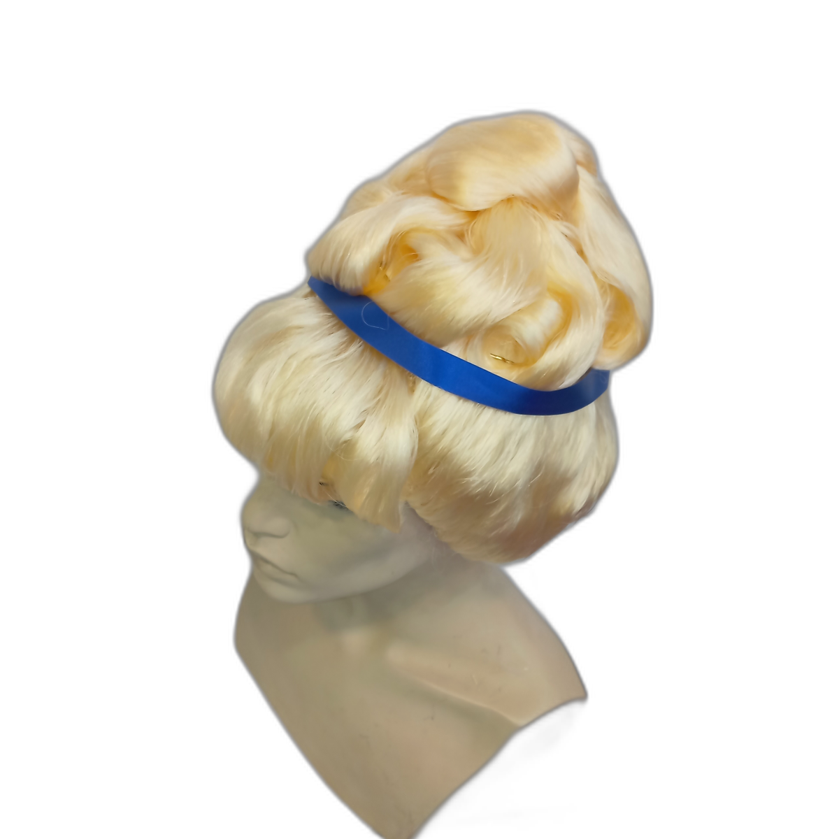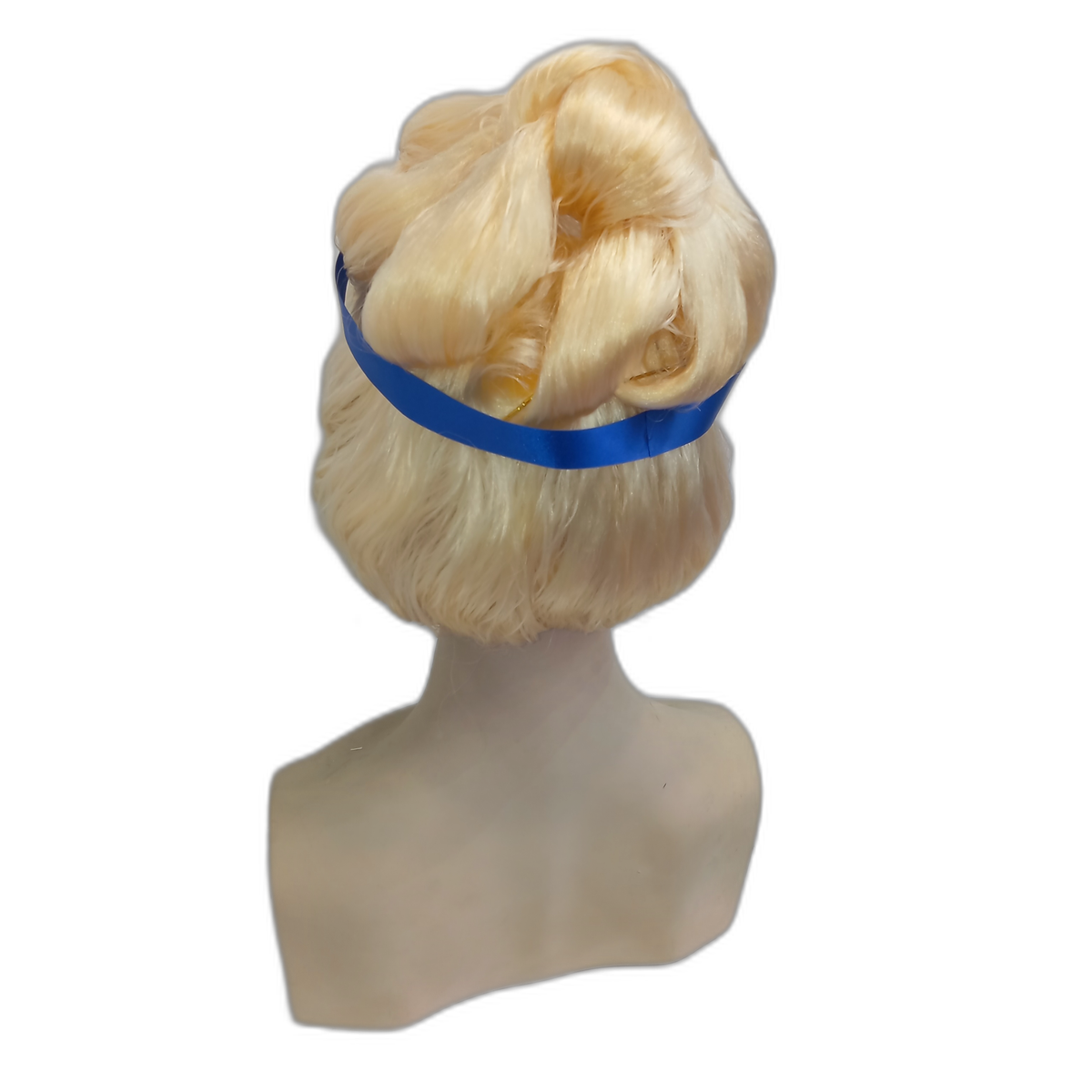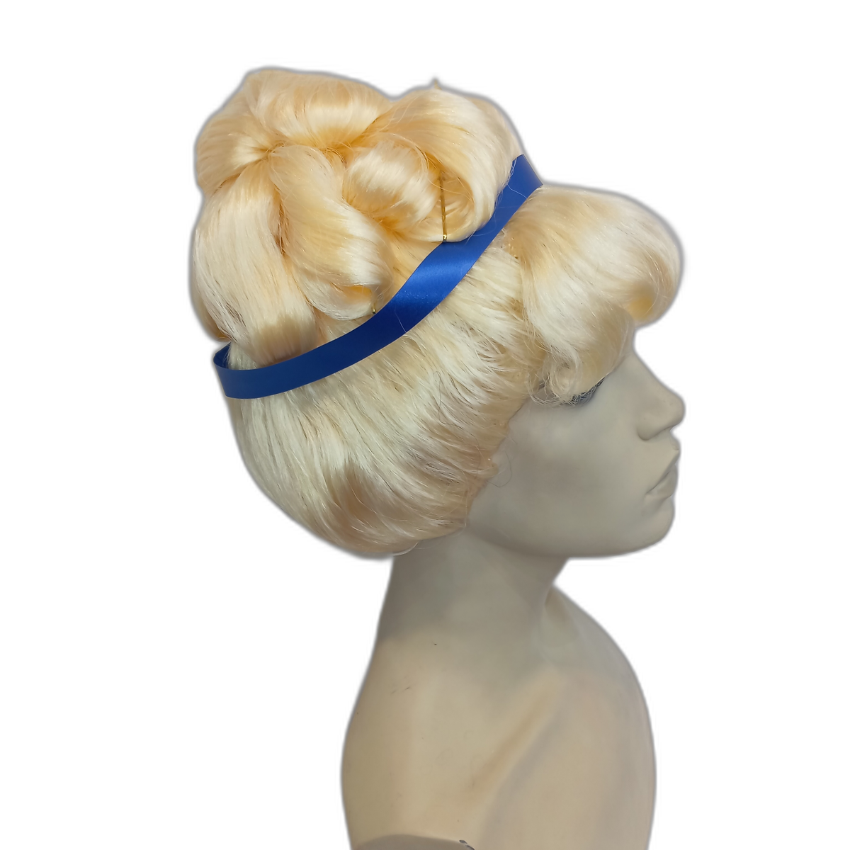 Handmade Blonde Curly Cinderella Wig with Classic Updo and Blue Ribbon Crown | Fairy Princess Style