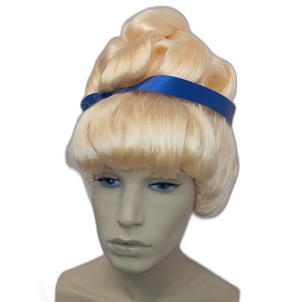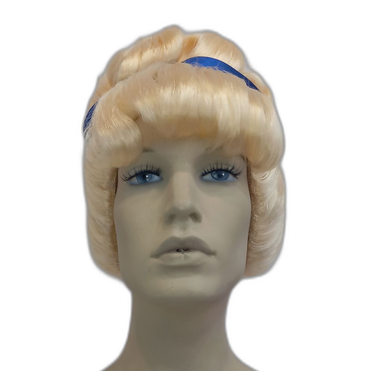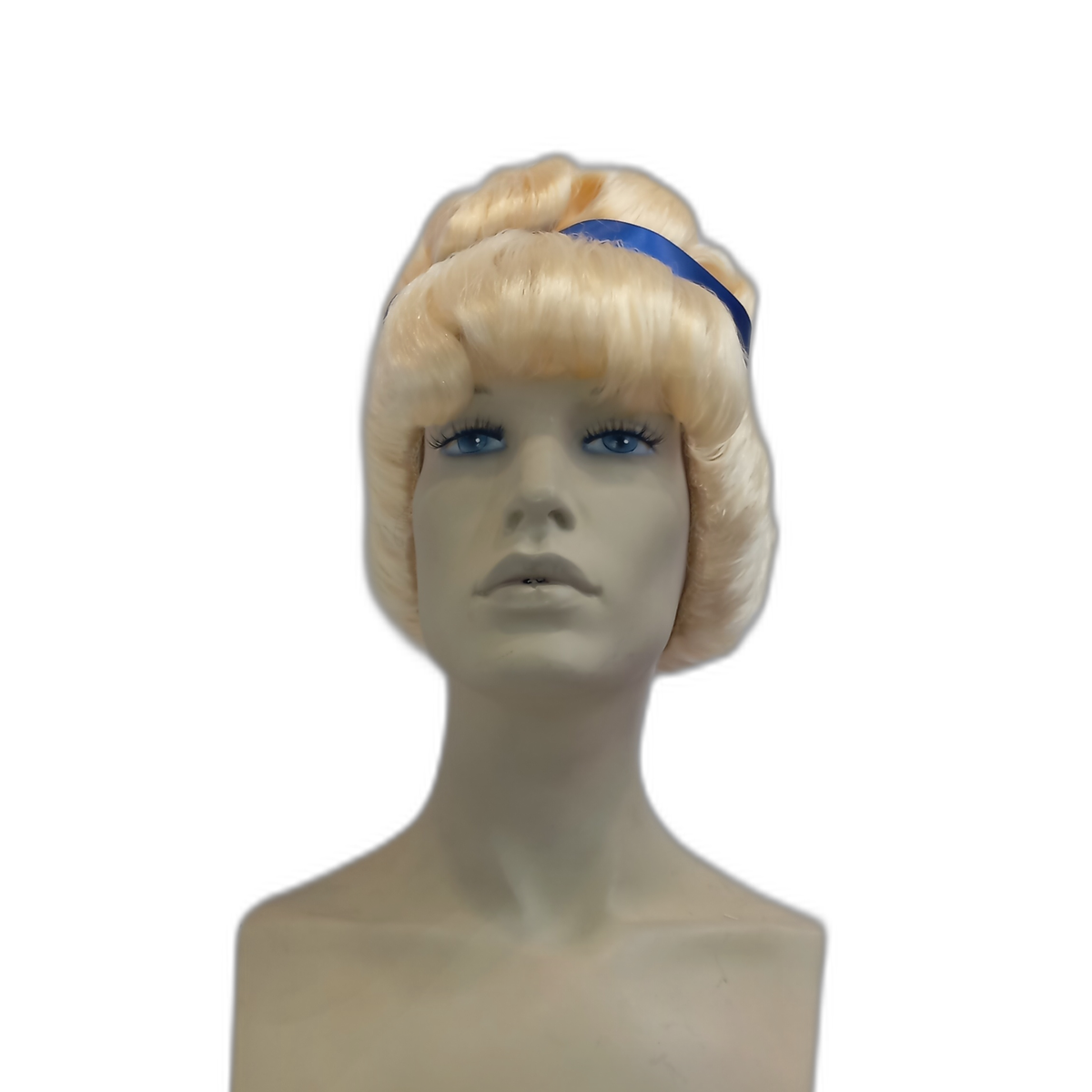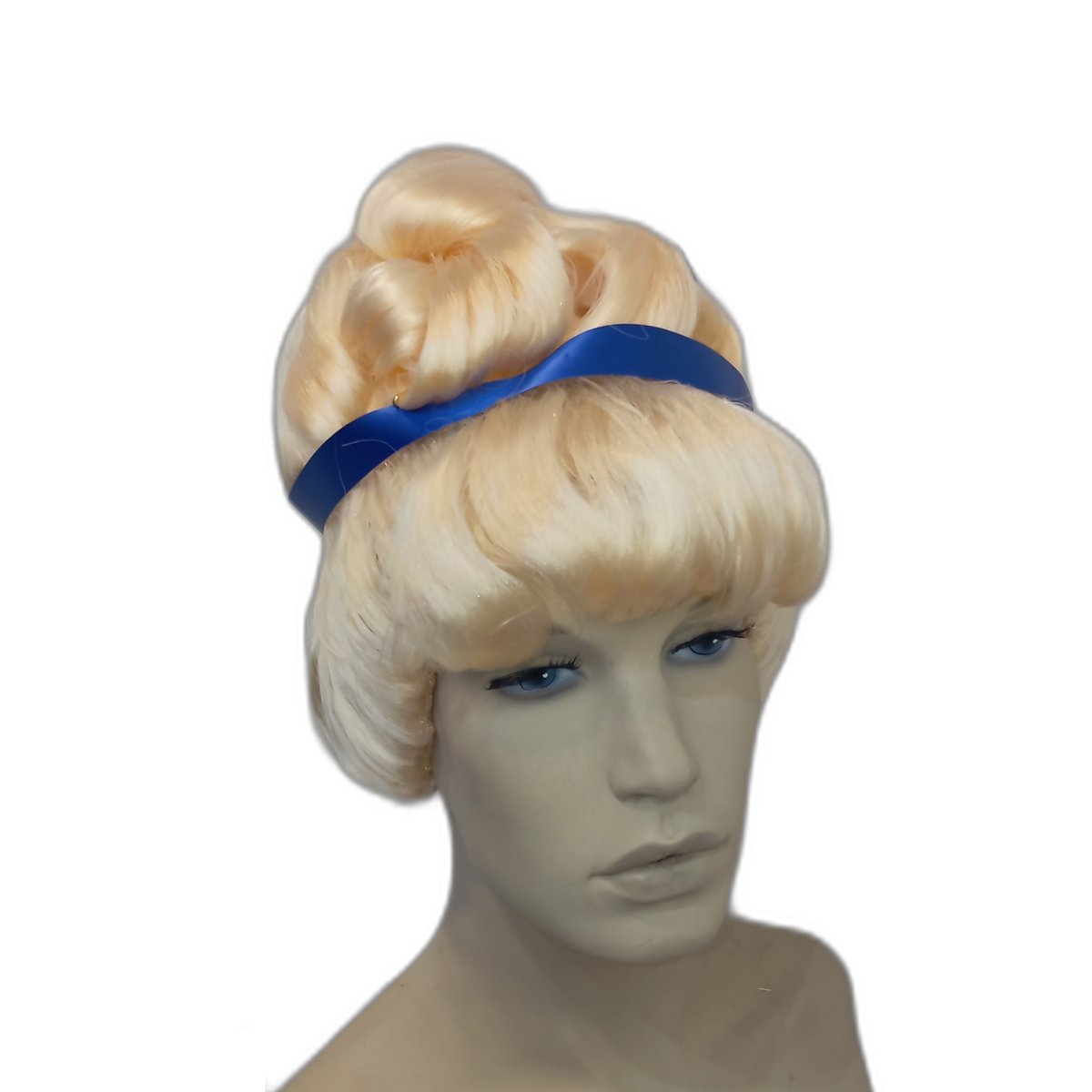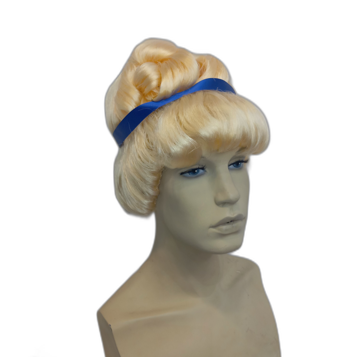 Handmade Blonde Curly Cinderella Wig with Classic Updo and Blue Ribbon Crown | Fairy Princess Style