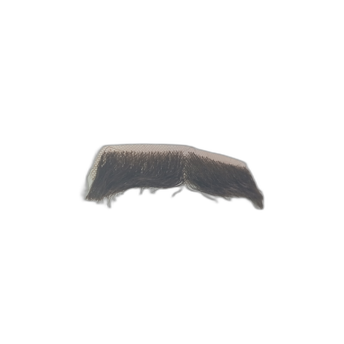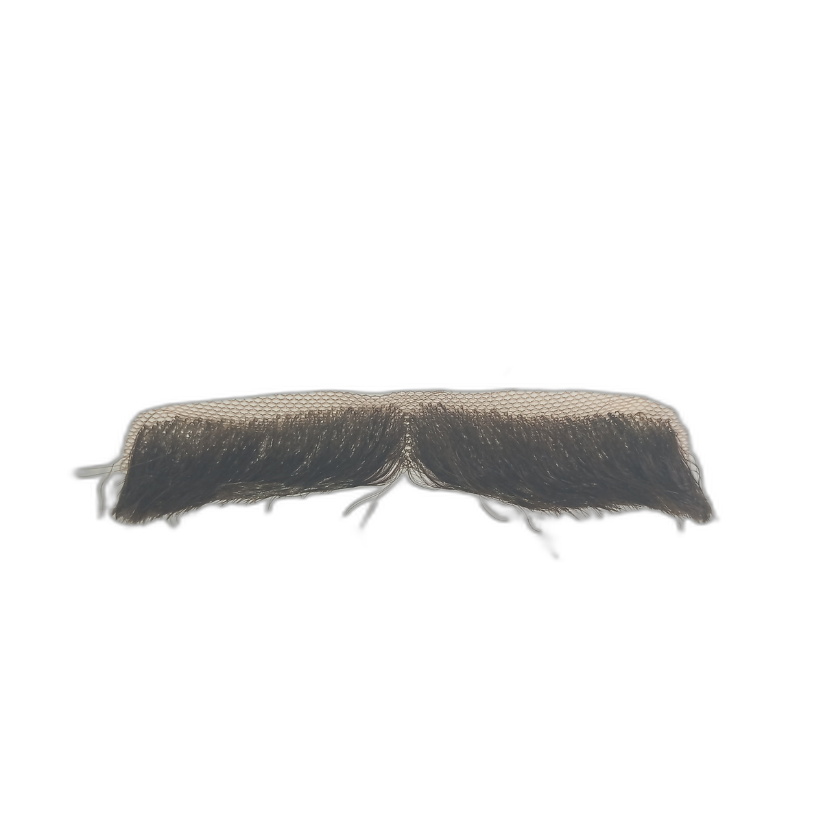 Handmade from 100% premium human hair, this brown moustache features a soft lampshade shape with defined edges, reminiscent of a thick pencil moustache. Its neat lines and natural density give it a distinguished, camera-ready finish that flatters both period and contemporary characters. Its shape is held by hair spray.