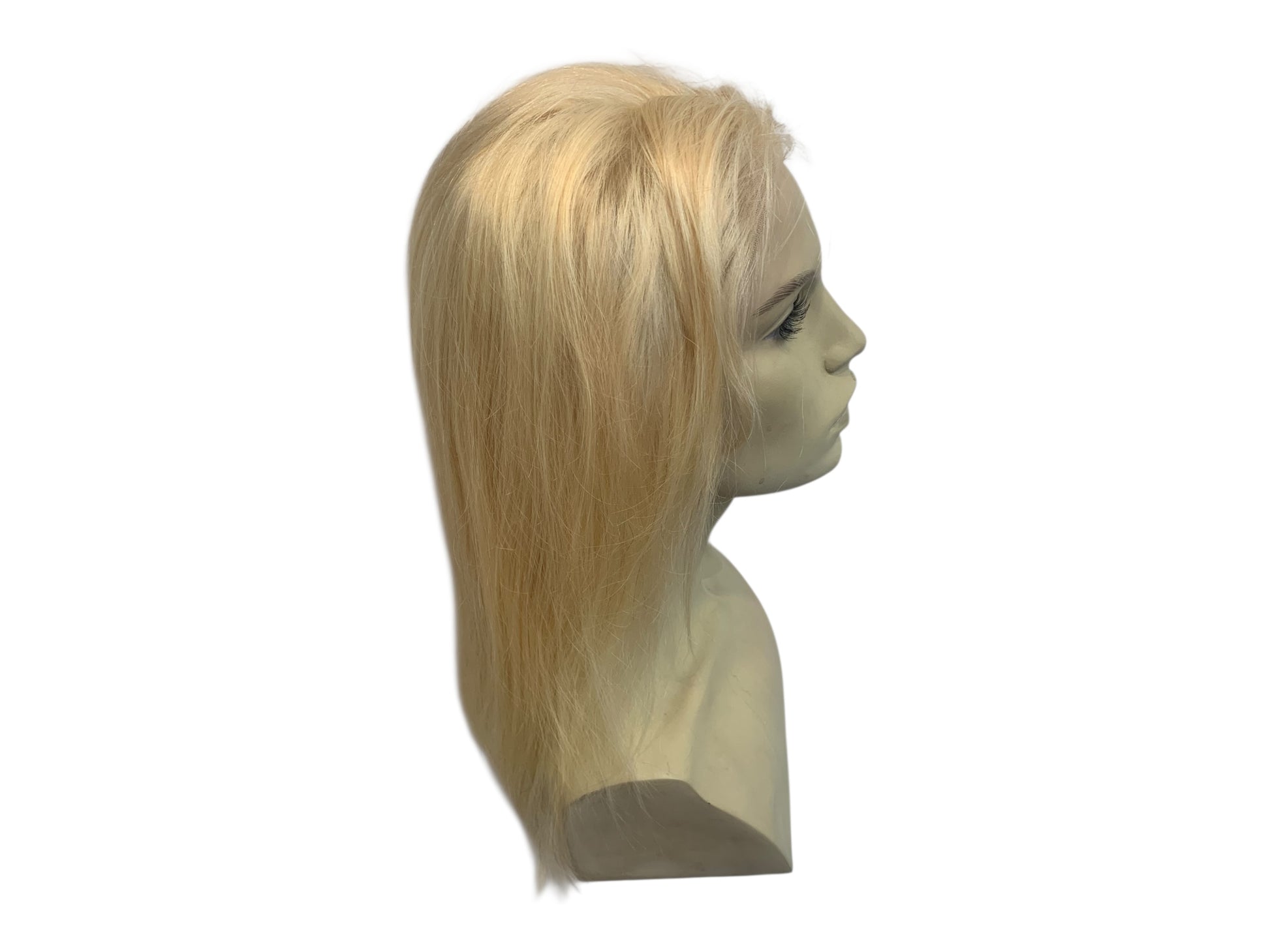 Meticulously crafted with superior attention to detail, this wig showcases exceptional quality construction designed to maintain its lustrous appearance and structural integrity through regular wear. The combination of genuine human hair, invisible lace front technology, and gorgeous platinum color creates a professional-grade piece that consistently delivers salon-quality results. Features a handcrafted crown and lace top.