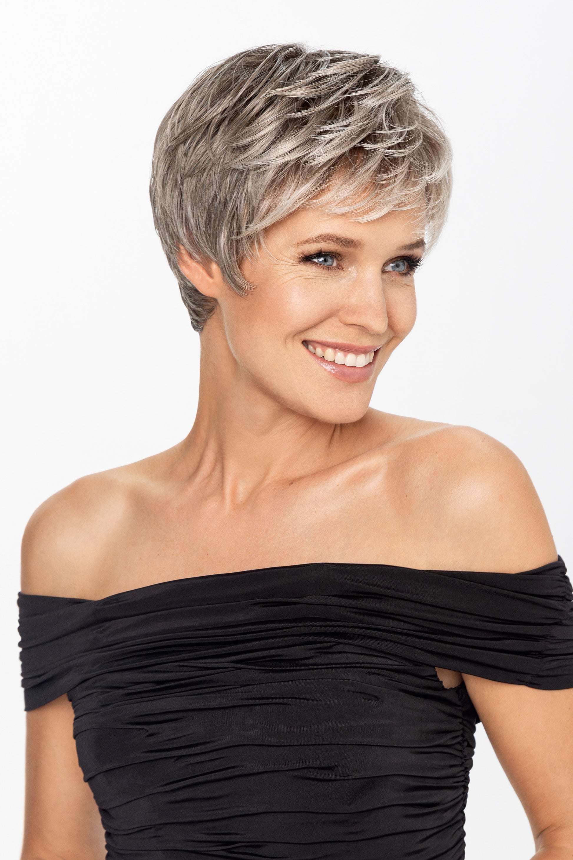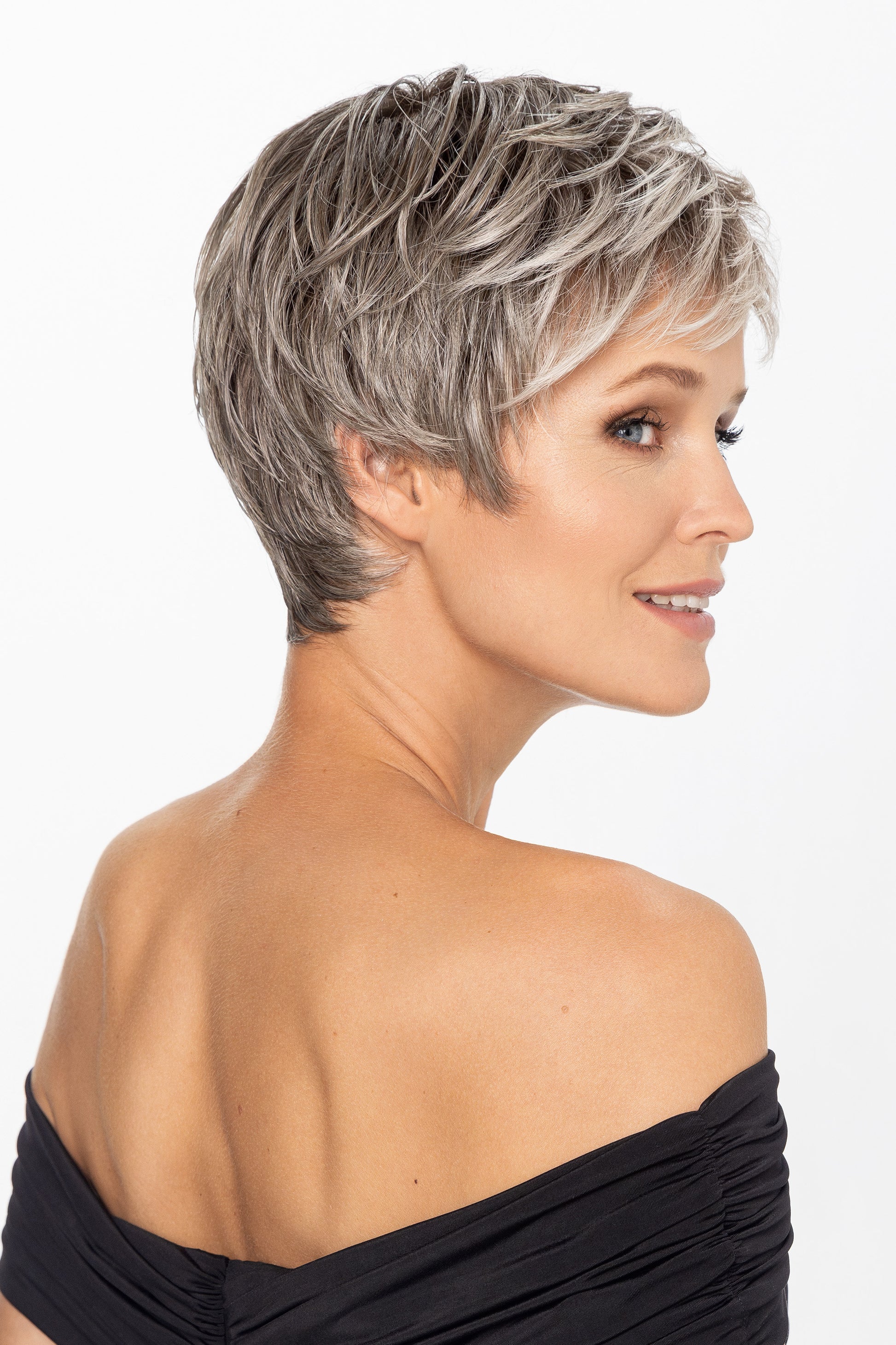 Crafted from heat-resistant synthetic fibres, Lizzy allows styling with heated tools up to 130°C. A monofilament top and lace front create a natural-looking hairline. Lizzy is designed for minimal maintenance and maximum impact. It’s a short style with timeless appeal and modern versatility.